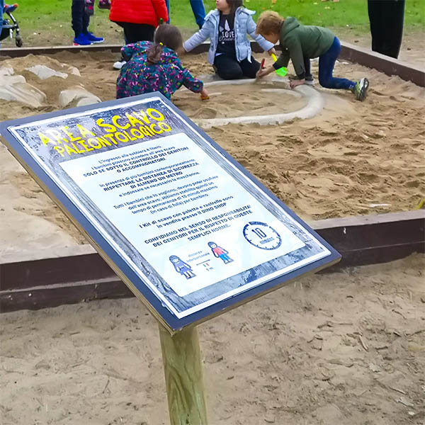 Con il biglietto d'ingresso puoi visitare in autonomia il percorso espositivo nel bosco e nel prato dove scoprirai 45 installazioni di dinosauri e animali presitori a grandezza reale e far giocare i bambini nell'area dello scavo paleontologico alla scoperta del grande fossile nascosto sotto la sabbia.