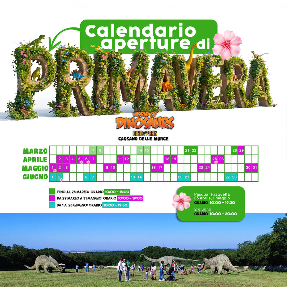 Il parco giurassico World Of Dinosaurs di Cassano delle Murge è un parco temporaneo dedicato interamente ai giganti del passato, che offre un’avventura coinvolgente ed educativa per tutta la famiglia e l’occasione ideale per avvicinare i più piccoli al mondo dei dinosauri .